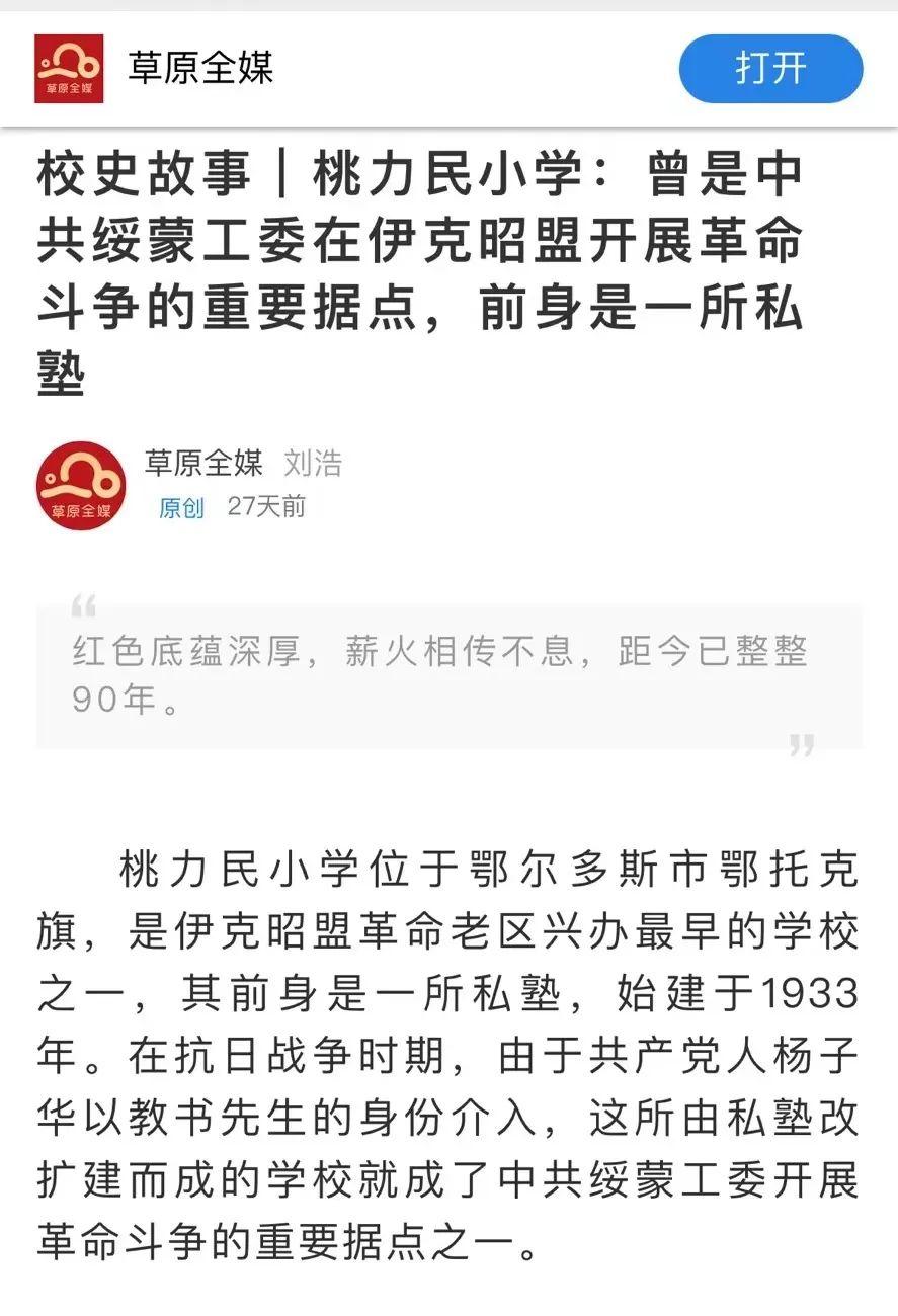 草原全媒刊发鄂托克旗桃力民小学红色校史-九游会ag