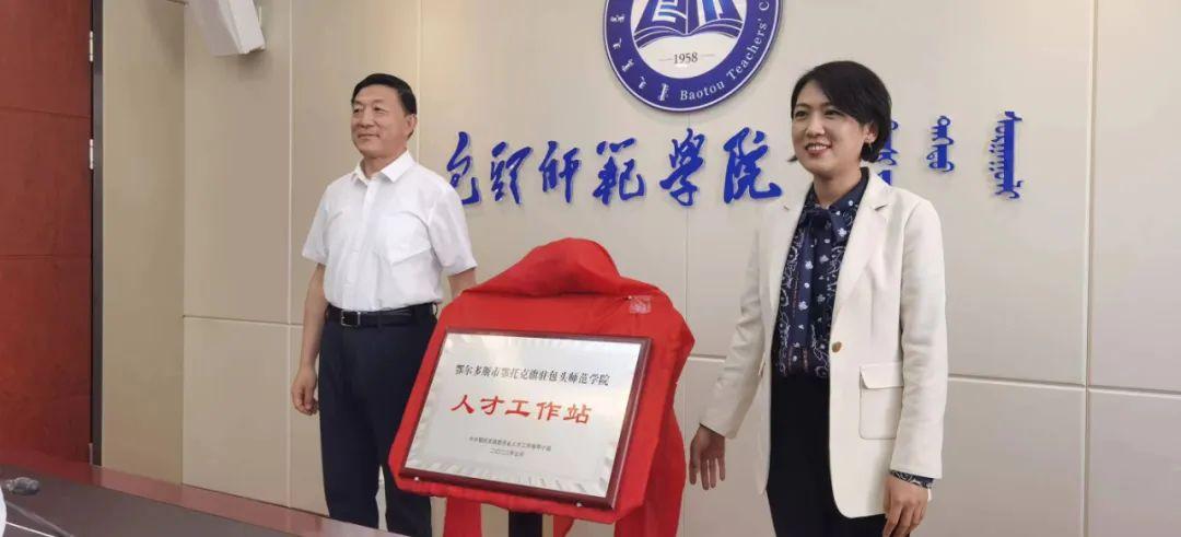 崔婧代表鄂托克旗人民政府向包头师范学院授予人才工作站