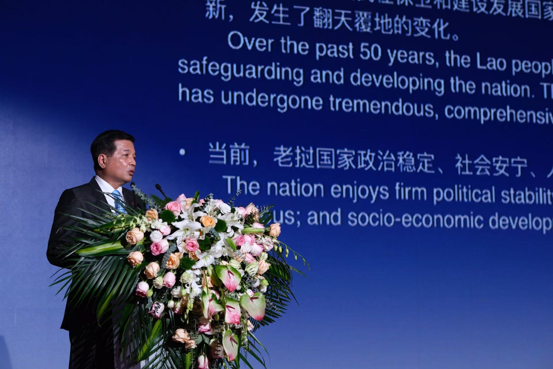 老挝人民民主共和国驻华特命全权大使宋蓬·西加伦在致辞中表示,老中两国自1961年4月25日正式建交以来,双边关系持续稳固、深化和发展,从长期稳定的全面战略九游会ag的合作伙伴关系提升为了命运共同体。当前,两国正在稳步推进第二版《构建老中命运共同体行动计划(2024-2028)》,力求推动双边合作提升至更高质量的新水平。